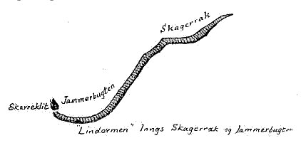 Da Lindormen nu vandrer langs Hanherreds Kyst og rimeligvis langs hele Kysten fra Skagens Odde til Skarreklit, seer vi altså, hvordan den bræmmer Jyllands Nordvestkyst ud mod det åbne Verdenshav, med andre Ord netop optræder i samme rolle som Midgårdsormen, som Ydergrænse for Midgård.